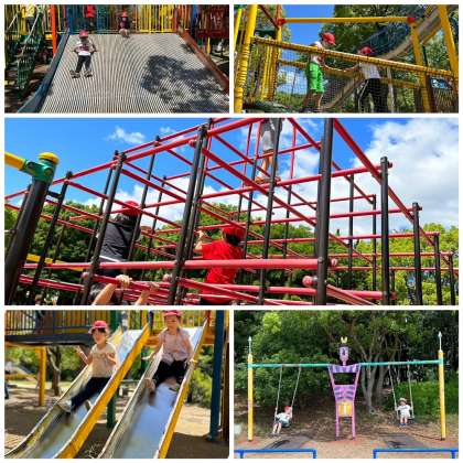 公園に入ってすぐにある、「わんぱくランド」でわんぱくに遊んでいます!