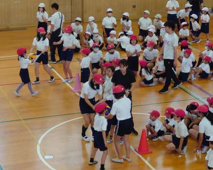 1年生と6年生は、「ペア学年集会」を開催しました。写真はペアでのボール運び競争の様子です。6年生はしっかりとペアの1年生を導くことができたでしょうか!? このような活動を積み重ねることで、6年生には少しずつ最高学年としての自覚を育てていってもらいたいです。そして、1年生の「あこがれ」として、成長していってほしいですね。