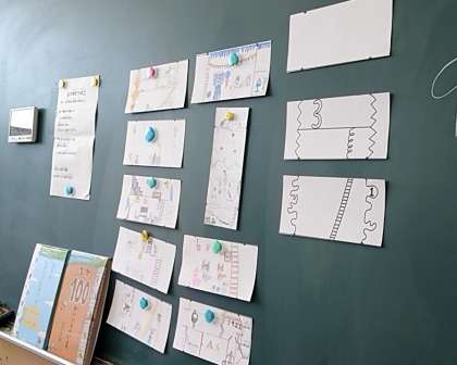 図工では、岩井俊雄さんの絵本『100かいだてのいえ』をもとに、4年生オリジナルの「31かいだてのいえ」をデザインしました。ひとりひとりがアイデアを出し合って、思い思いの“階”をカードを描いていきました。全員のカードが完成したら、それらを合わせて学校のどこかに「31かいだてのいえ」を掲示します。お楽しみに!