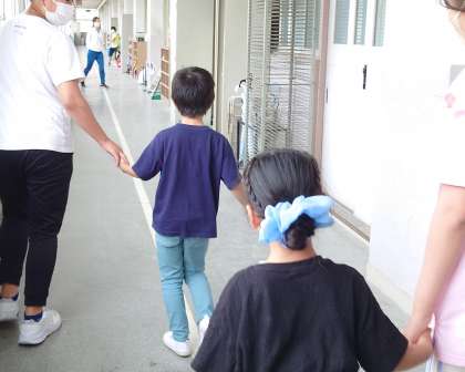 今回は「顔合わせ会」として、1年生と6年生、2年生と5年生、3年生と4年生がペアを組んで、自己紹介をします。まずは、集合場所の確認! 1年生や2年生を迎えにいって、活動をリードしている5・6年生の姿はとても頼もしいものでした。