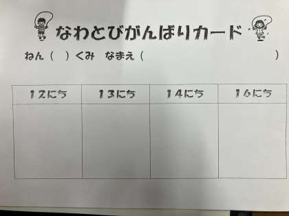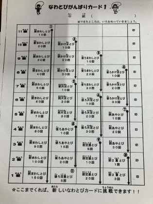今年度1・2年生には左のなわとびカード、3・4・5・6年生には右のなわとびカードを配付します。