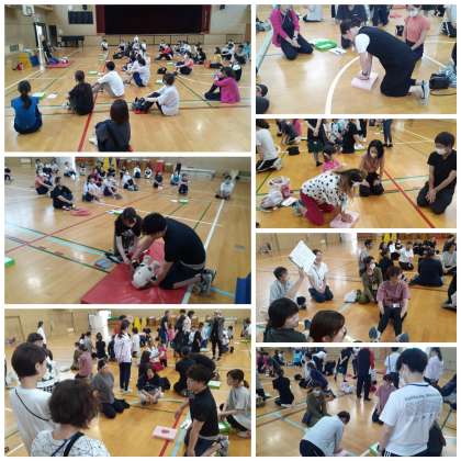 15時から、教職員と保護者で「もしもの時に備えて、命の連鎖を途切れさせないために」取り組みました。