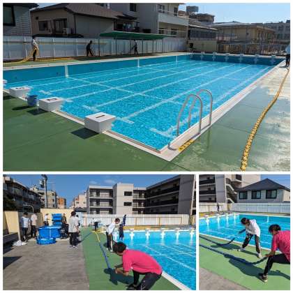 「つめを切ること」「早めに寝て朝ごはんをしっかり食べること」等、安全に思い切り運動できるための約束があります。楽しいプール水泳になるために、ご家庭でのご協力をよろしくお願いいたします。