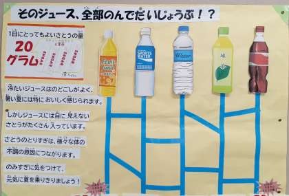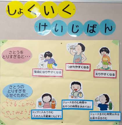 砂糖のとりすぎを防ぐために、ジュースを飲む時間以外はお茶や水を飲むなど、できることからやってみましょう。