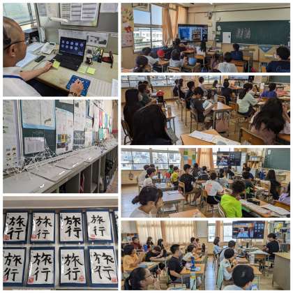 写真は、6年生。静かに画面を見つめ話を聞くことができました。「旅行」という習字が夏休みをわくわくさせてくれますね。