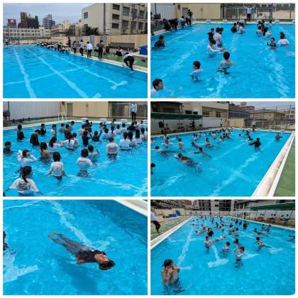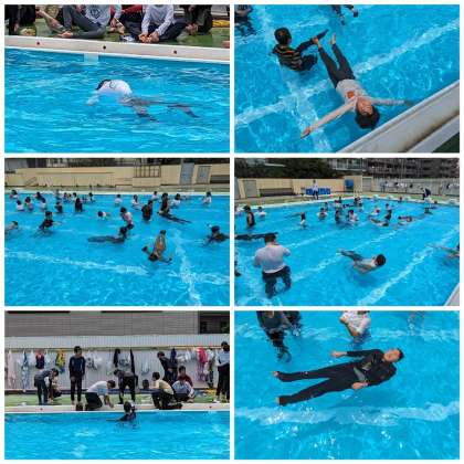 6年生は「もしも服を着たまま水に入ることになった場合」を想定し、着衣泳に取り組みました。