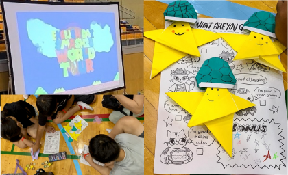 本日、6年生3名がイングリッシュ・デイに参加しました。C-NETの先生が総勢100名以上集まって、スーパーマリオに関連した楽しいアクティビティーを企画・運営してくださいました。巨大なスクリーンには、迫力満点の映像が映し出され、子どもたちを飽きさせない工夫が盛りだくさんでした。