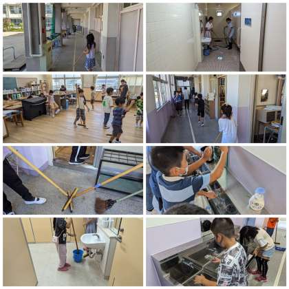 始業式の後は大そうじ。「全員がそうじを丁寧にすること」は、長居小学校の子どもたちの立派なところの一つです。力を合わせてピカピカの学校にできました!