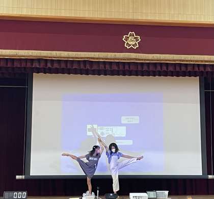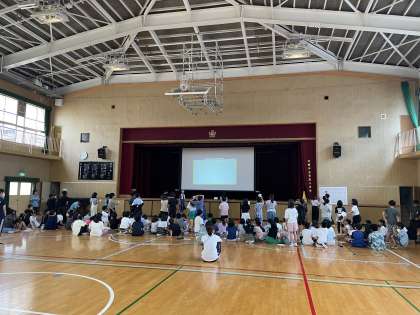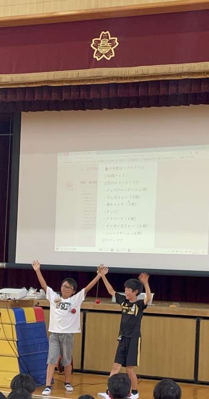 林間学習で計画していた雨の日プログラムに加えて各クラスの有志でダンスやけん玉を披露しました。