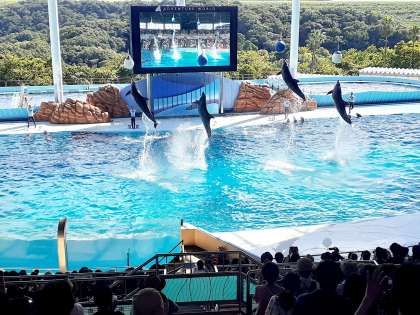 マリンライブ「スマイルズ」を鑑賞したり、おみやげを選んだりしています!