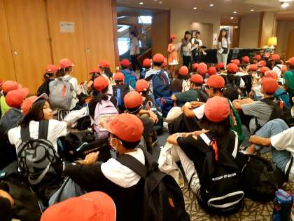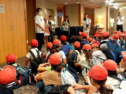 開舎式も朗らかな司会進行でした。お世話になる宿舎の方にしっかり挨拶しました。これから避難訓練です。その後、入浴・買い物を交互に行います。