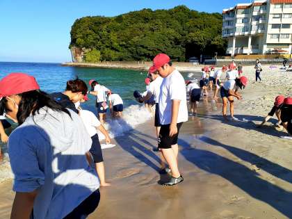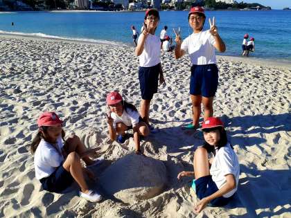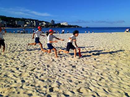自由時間には、ビーチフラッグ、砂遊び、海に足をつけるなどして楽しみました。