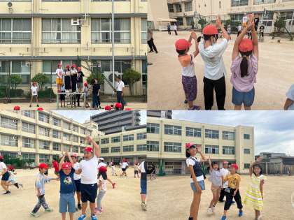 6年生が1年生の手を引いて、おにから逃げまわって楽しんでいました!