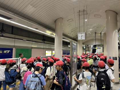 楽しい遠足も終わり、予定通りの電車で帰っています!