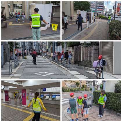 「広がって歩いていないか」「長居駅地下道を回りの人に迷惑かけるような歩き方はしていないか」など、見まわりながら、指導の声をかけました。ご協力いただきありがとうございました。