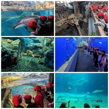 たくさんの魚、生き物と出会っています。どの魚の絵を描こうかと、考えている子もいます。