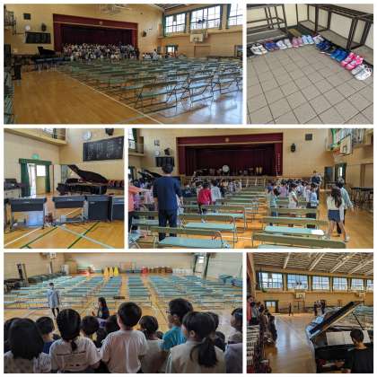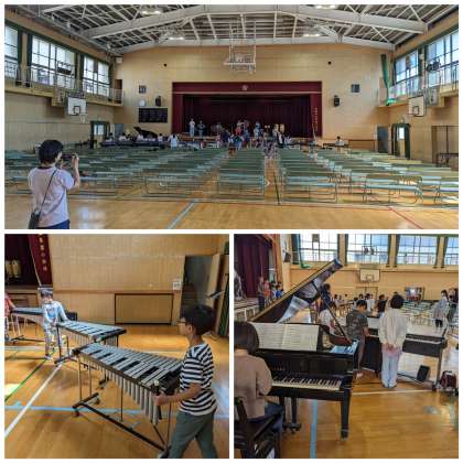 写真上は3時間目の1年生。舞台から見える景色にどきどきがとまらない!といった様子です。写真下は、4時間目の4年1組。クラス毎の演奏は、クラスの団結力が発揮されます。力を合わせて練習しましょう♪