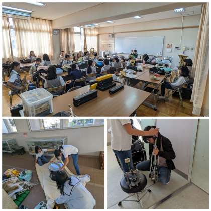 本日は、長居植物園コンサートです!ジュニアバンドのメンバーは8:00時に集合し、入念に音出しをしています。楽器を運ぶ準備も子どもたちが行います。