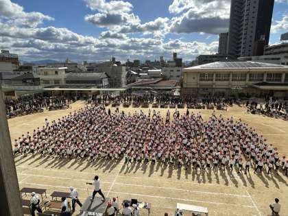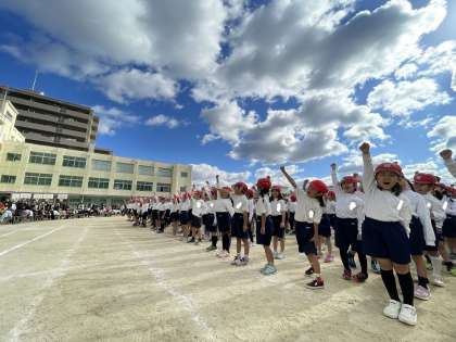 これからも笑顔いっぱい元気いっぱいの長居小学校!えい、えい、オー!