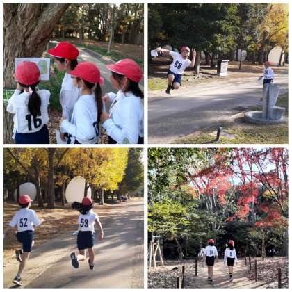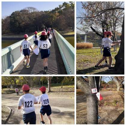 ポストを探して、広い長居植物園を走ります!スタンプを押したら、また探します!一生懸命な長居小の子どもたち、素敵です!