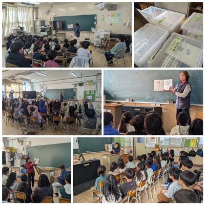 今年も、絵本読み聞かせボランティア「すみよし おはなしパレット」の皆さんにお越しいただきました。今日から3日間、全クラスで絵本を読んでいただきます。