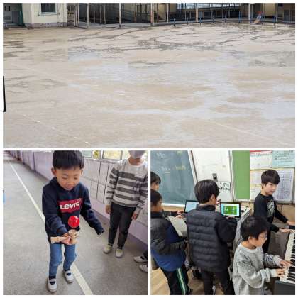 2年生はけん玉、4年生はオルガンやタブレットをして遊んでいました。他にはどんな遊びをして楽しんでいるのかな?
