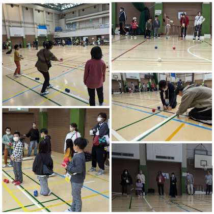 昨年度に続いての参加です。長居小学校は、児童チーム3、保護者チーム1の4チームでボッチャを楽しみました。