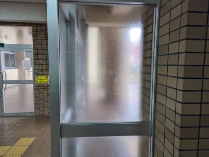 写真は朝の学校の玄関です。結露(けつろ)で曇っていました。なんと、外側に結露がついていました。ということは・・・学校の内側の方が寒いということです。建物の内側の方が寒いって、なんか不思議な気がしますね。