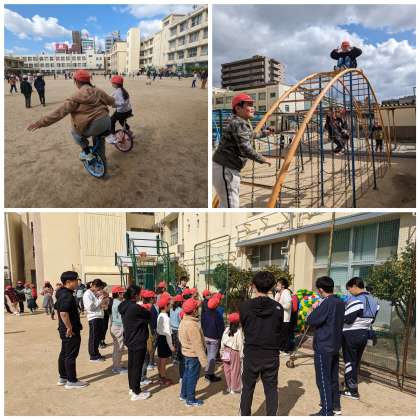 雨の日が続き、外遊びができませんでしたが、今日は晴れ!15分休み、子どもたちの元気な声が響いていました。