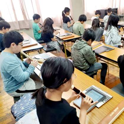 5年生のようすです。端末で楽譜を確認してリコーダー演奏をしました。
