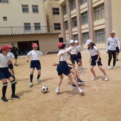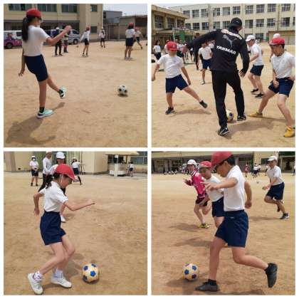6年生は最後のサッカースクールです。大きな歓声があがっています!