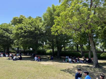 広場の木陰でお弁当です!