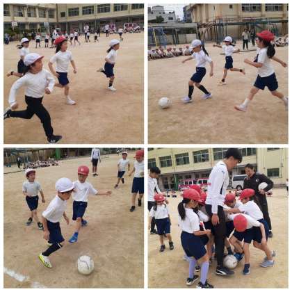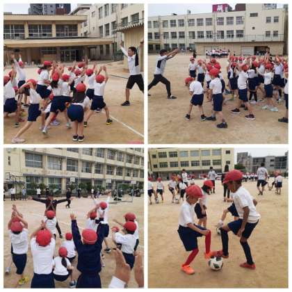 元気のよいあいさつでスタートしました! 友だちへの声援が響く中、全力でボールを追いかける2年生の姿がありました!
