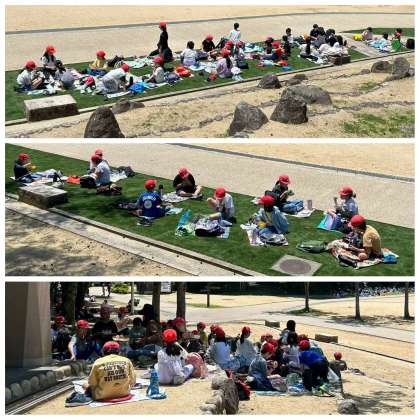 オリエンテーリングは、どの班もほぼ時間通りにまわることができました。楽しみにしていたお弁当・おやつタイムです!