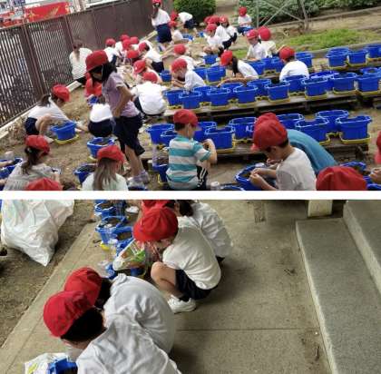 「きれいな花が咲きますように」と願いを込めて水をあげています。