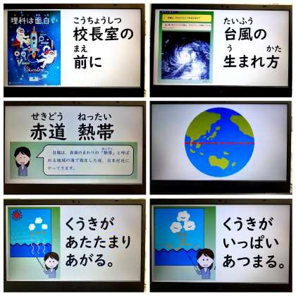 児童朝会では、台風1号が発生したというニュースもありましたので、冊子「理科は面白い」から「台風は、どのようにして生まれるの?」の話をしました。