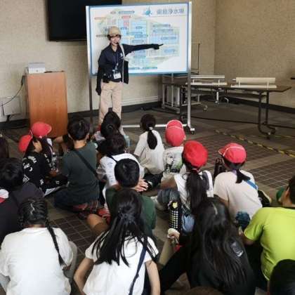 施設見学では、淀川の水からごみを取り除き、オゾンで浄水する過程を学びました。