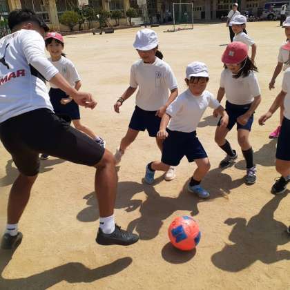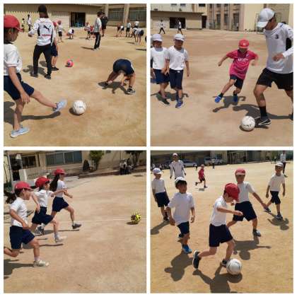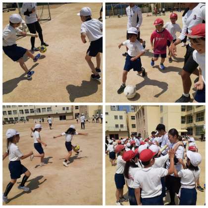 「全力でがんばる!」「挑戦する!」の2つのめあてでスタートしました。元気よくボールを追いかける姿、友だちを応援する声が素敵でした!