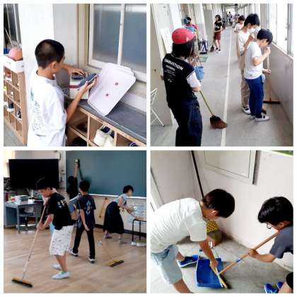 掃除時間もみんな熱心です。きれいな学校・教室はうれしいですね。