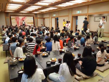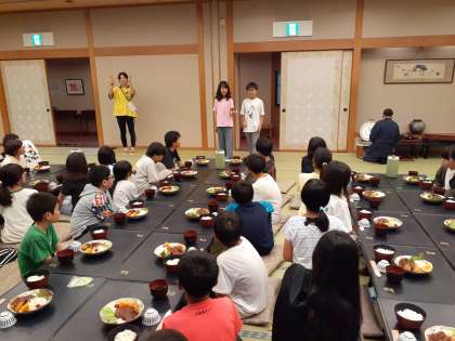 お風呂に入り、18時30分から夕食です。みんなで声をそろえて「いただきます!」