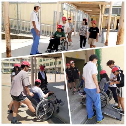 大阪市立心身障がい者リハビリテーションセンターの皆様を講師にお招きし、6年生が車いす体験を行いました。