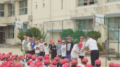男子長居ミニバスケットボールチームは夏休みに三つの大会で好成績を納めましたので、表彰式を行いました。