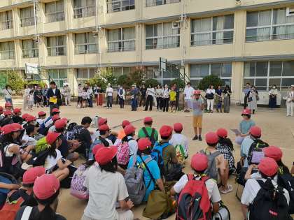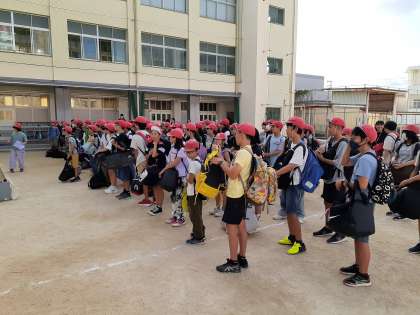 楽しみにしていた修学旅行がいよいよスタートです! 全員元気に集合し、爽やかに出発式を行いました。