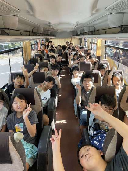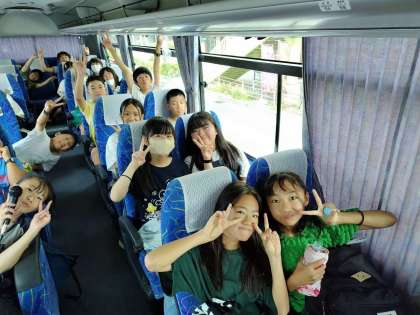 紀ノ川サービスエリアで9:25まで休憩しました。各号車でバスレクを楽しんでいます!
