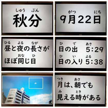 朝晩少し涼しくなり、秋の訪れを感じます。本日の児童朝会では、秋分、月、敬老のつどいのようす等について話がありました。