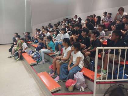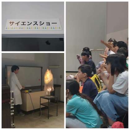 次はサイエンスショー! 学芸員さんの演示実験に引き込まれます。