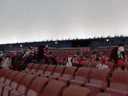 最初はプラネタリウムです。学芸員さんの問いかけに、知っている星や星座の名前をたくさんつぶやく長居っ子でした。