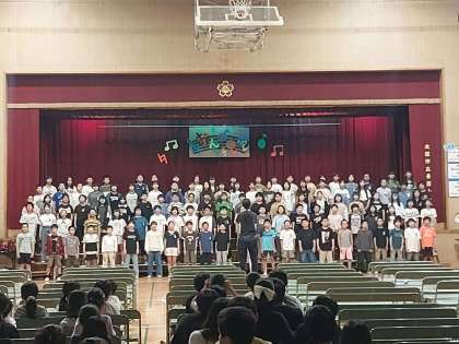 土曜日の校内音楽会の開始予定時刻は、4年10:45、2年11:25、6年12:05です。