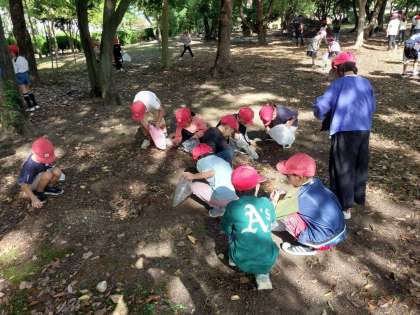 どんぐり拾いをしました。数はたくさんありましたが、ちょっと小さなものが多かったので、探しにくかった人もいました。反対に、大きなどんぐりを見つけて、見せてくれる人もありました。