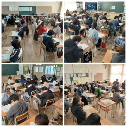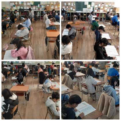 昨日に続いて調査が行われています。本日は、算数・理科・英語(3・4年生は無し)です。40分間の解答時間を有効に使っています!